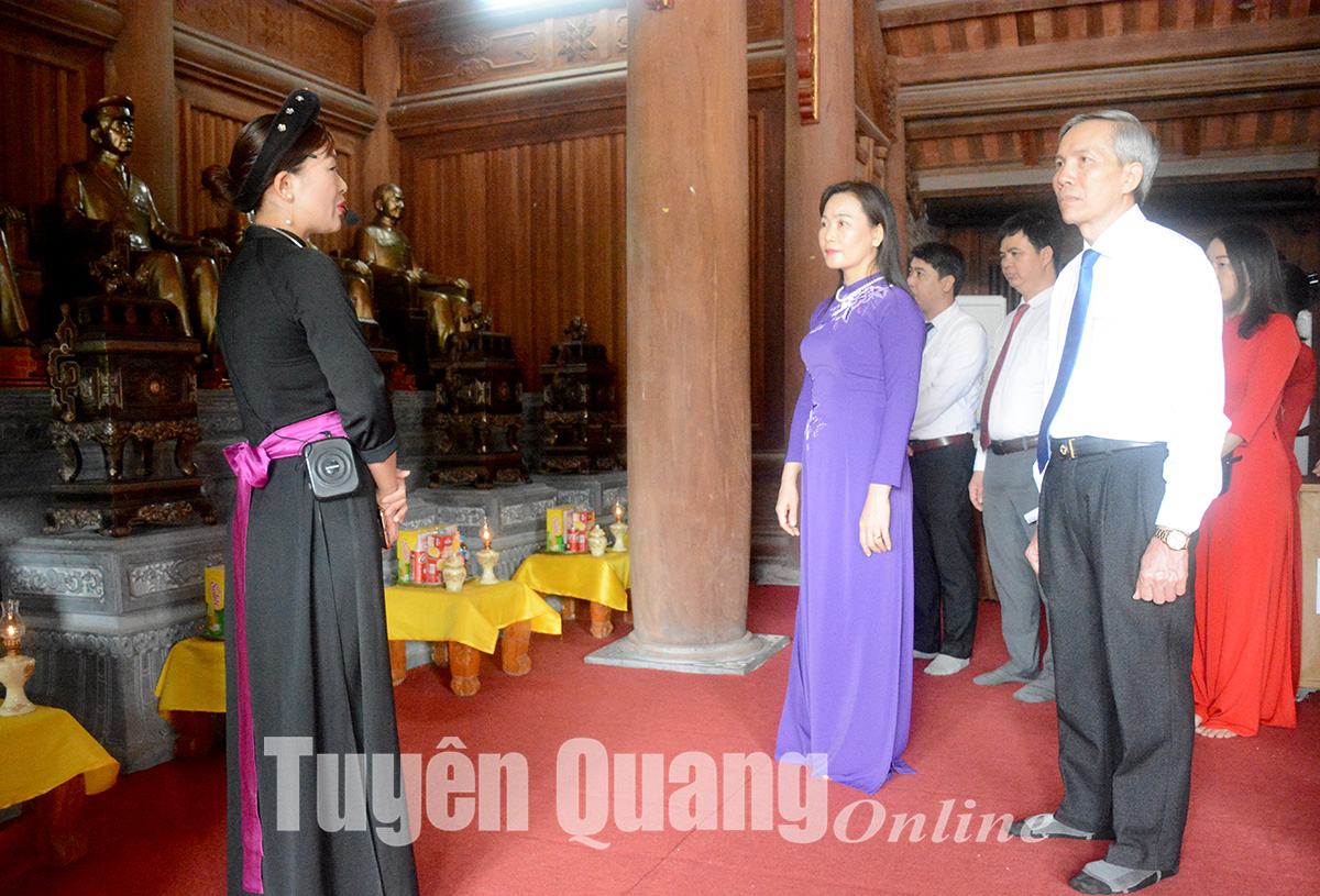 Đoàn đã dâng hương tại Khu tưởng niệm các vị tiền bối cách mạng thuộc Khu Di tích Quốc gia đặc biệt Tân Trào (Sơn Dương); nghe giới thiệu về tiểu sử các vị tiền bối cách mạng trong đó có đồng chí Tố Hữu.