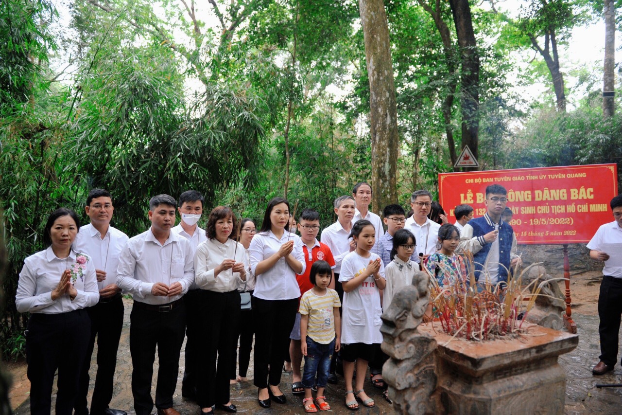 Nhân kỷ niệm 132 năm Ngày sinh của Chủ tịch Hồ Chí Minh (19/5/1890-19/5/2022), tại Khu di tích Quốc gia đặc biệt Tân Trào, Đoàn cán bộ, đảng viên Chi bộ Ban Tuyên giáo Tỉnh ủy Tuyên Quang, do đồng chí Nông Thị Bích Huệ, Ủy viên Ban Thường vụ Tỉnh ủy, Bí thư Chi bộ, Trưởng Ban Tuyên giáo Tỉnh ủy, Trưởng Ban Văn hóa - xã hội Hội đồng nhân dân tỉnh làm Trưởng đoàn, cùng các cháu thiếu niên, nhi đồng là con của cán bộ, đảng viên của Chi bộ tổ chức về nguồn báo công với Bác. Đoàn cũng đã thắp hương tại Đình Tân Trào, dâng hương lên Anh linh các vị Tiền bối cách mạng tại Khu tưởng niệm các vị Tiền bối cách mạng.