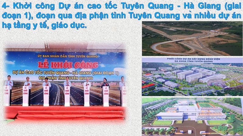 Ưu tiên nguồn lực cho đầu tư hạ tầng y tế, giáo dục, khởi công Dự án xây dựng Bệnh viện Đa khoa tỉnh Tuyên Quang tại địa điểm mới với quy mô 1.000 giường bệnh, đáp ứng nhu cầu chăm sóc và bảo vệ sức khỏe của nhân dân. Dự án xây dựng Trường THPT Chuyên Tuyên Quang tại địa điểm mới, là một trong số những công trình trọng điểm của tỉnh, với mục tiêu xây dựng và phát triển trường thành cơ sở giáo dục có chất lượng giáo dục cao, đạt chuẩn quốc gia, có trang thiết bị dạy học đồng bộ, hiện đại.
