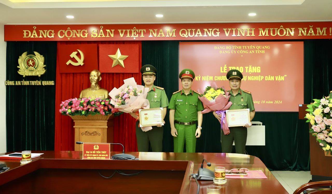 Nhân kỷ niệm 94 năm ngày truyền thống công tác Dân vận của Đảng (15/10/1930 - 15/10/2024), sáng ngày 15/10, Đảng bộ Công an tỉnh tổ chức Lễ trao tặng Kỷ niệm chương “Vì sự nghiệp Dân vận” cho 02 đồng chí là đảng viên đang sinh hoạt tại các chi, đảng bộ thuộc Công an tỉnh có thành tích nổi bật, xuất sắc trong tổ chức thực hiện công tác dân vận.