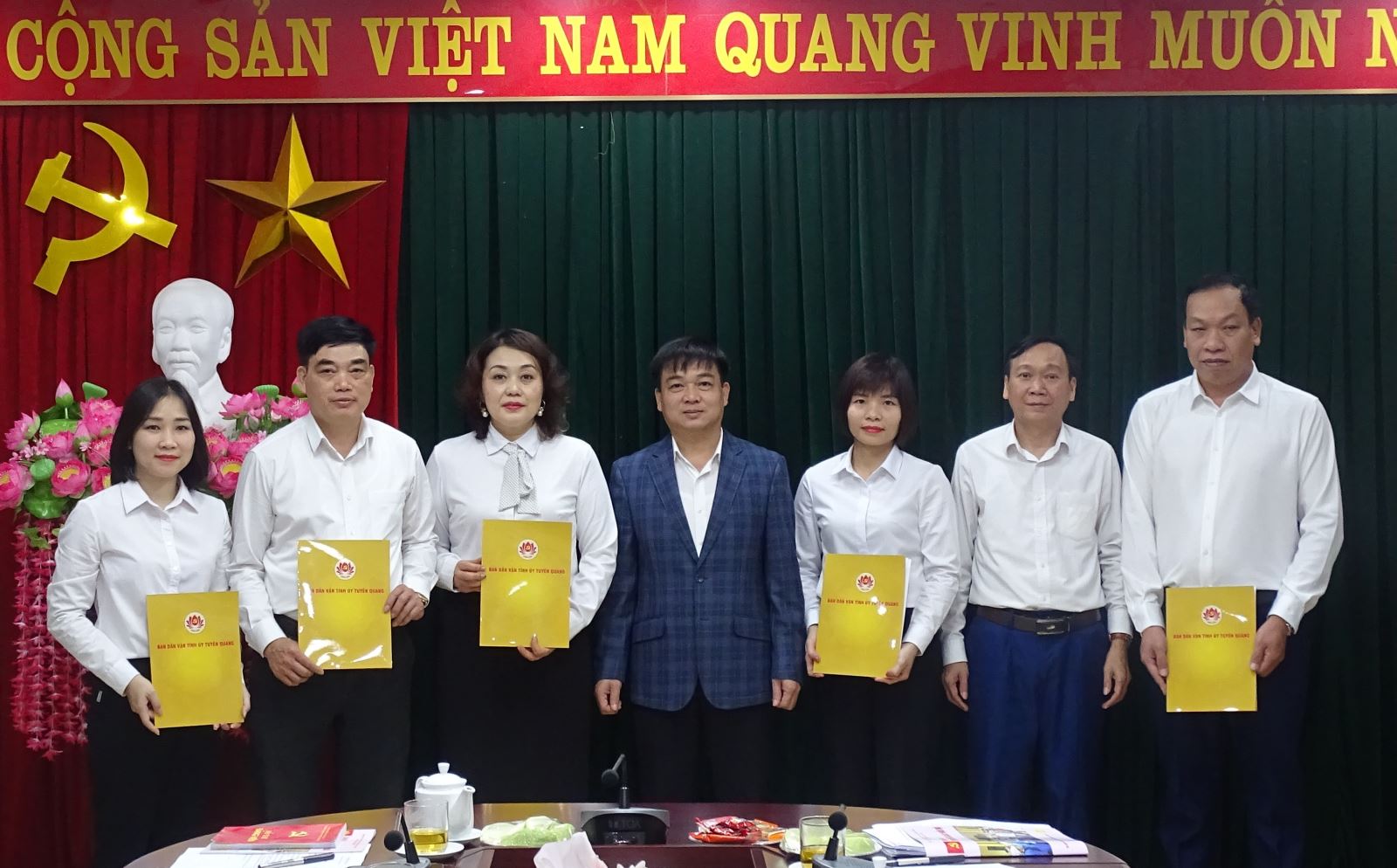 Thực hiện Quyết định của Ban Thường vụ Tỉnh uỷ về phê duyệt Đề án kết thúc Văn phòng Tỉnh uỷ phục vụ chung các cơ quan chuyên trách tham mưu, giúp việc Tỉnh uỷ, Ban Dân vận Tỉnh uỷ đã tổ chức tiếp nhận các đồng chí Nguyễn Thị Hồng Thái, Hà Thị Quyên, Phạm Thị Vân, Nguyễn Minh Phương, Nguyên Quang Cương thuộc Văn phòng Tỉnh uỷ đến nhận công tác tại Phòng Đoàn thể và các Hội, Ban Dân vận Tỉnh uỷ.