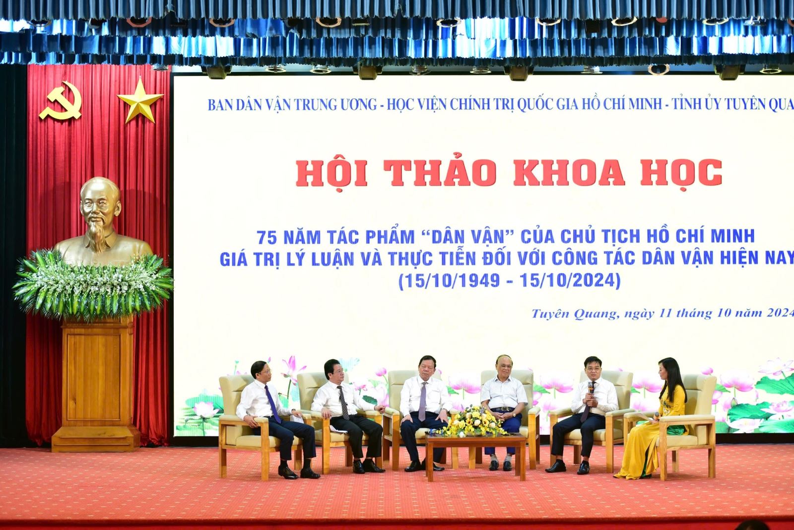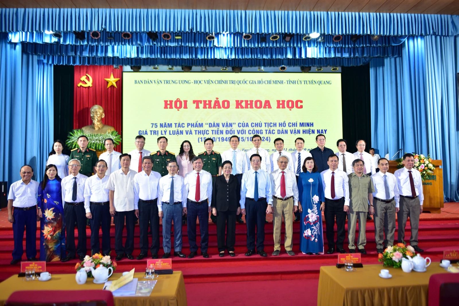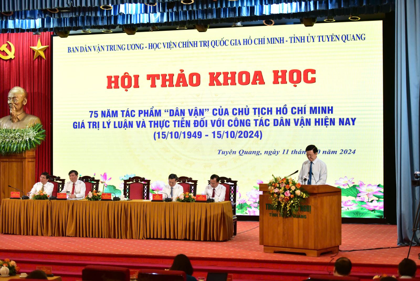 Thiết thực kỷ niệm 75 năm Chủ tịch Hồ Chí Minh viết tác phẩm "Dân vận", 94 năm Ngày truyền thống công tác Dân vận của Đảng, 25 năm Ngày "Dân vận" của cả nước; tiếp tục khẳng định tầm vóc, giá trị lý luận, thực tiễn tác phẩm "Dân vận" của Chủ tịch Hồ Chí Minh, sáng ngày 11/10/2024, Ban Dân vận Tỉnh ủy tham mưu Tỉnh ủy Tuyên Quang phối hợp với Ban Dân vận Trung ương, Học viện Chính trị Quốc gia Hồ Chí Minh tổ chức Hội thảo khoa học 75 năm Tác phẩm “Dân vận” của Chủ tịch Hồ Chí Minh - Giá trị lý luận và thực tiễn đối với công tác dân vận hiện nay (15/10/1949-15/10/2024) với sự trang trọng, quy mô tại tỉnh Tuyên Quang - Quê hương cách mạng, Thủ đô kháng chiến, nơi Chủ tịch Hồ Chí Minh viết tác phẩm "Dân vận" đăng trên Báo Sự thật ngày 15/10/1949 dưới bút danh X.Y.Z.
