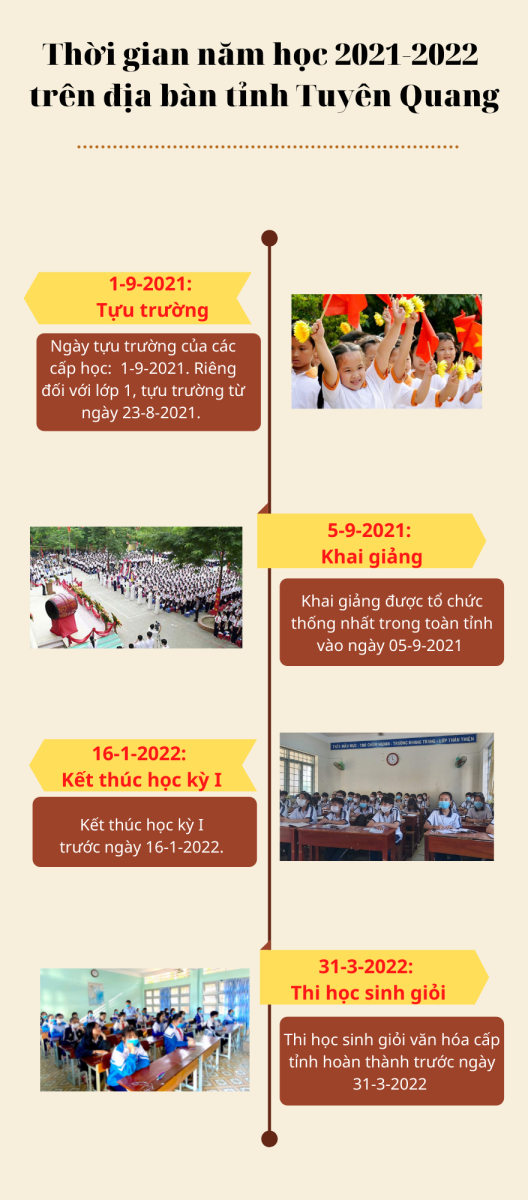 Theo khung kế hoạch thời gian năm học 2021 - 2022 đối với giáo dục mầm non, giáo dục phổ thông và giáo dục thường xuyên trên địa bàn tỉnh Tuyên Quang, các mốc thời gian cần nhớ cụ thể như sau: