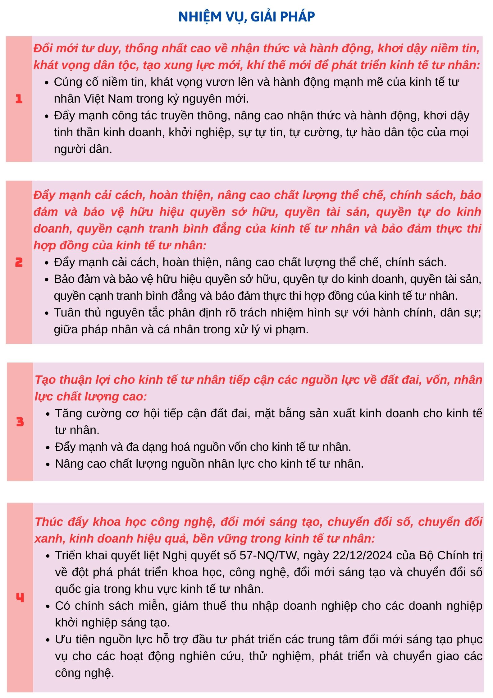 Ngày 04/5/2025, Bộ Chính trị ban hành Nghị quyết số 68-NQ/TW về phát triển knh tế tư nhân với mục tiêu, nhiệm vụ, giải pháp như sau: