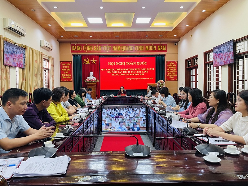 Sáng 16/4/2025, tại Phòng họp Diên Hồng (Nhà Quốc hội), Bộ Chính trị, Ban Bí thư Trung ương Đảng tổ chức Hội nghị toàn quốc quán triệt, triển khai thực hiện Nghị quyết Hội nghị lần thứ 11 Ban Chấp hành Trung ương Đảng khóa XIII. Dự hội nghị có Tổng Bí thư Tô Lâm; các đồng chí Ủy viên Bộ Chính trị; Ủy viên Ban Bí thư, Ủy viên Ban Chấp hành Trung ương Đảng; nguyên lãnh đạo Đảng, Nhà nước; các đồng chí lãnh đạo các ban, bộ, ngành, đoàn thể ở Trung ương.