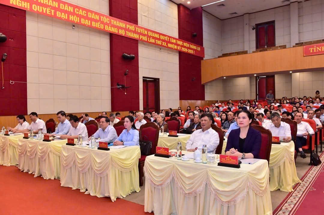 Trên địa bàn tỉnh Tuyên Quang, Hội nghị được kết nối trực tuyến Hội nghị toàn quốc đến điểm cầu cấp tỉnh tại Nhà Văn hóa Trung tâm thành phố Tuyên Quang và các điểm cầu trong Đảng bộ tỉnh, với tổng số 170 điểm cầu, 22.553 đại biểu tham dự. Chủ trì tại điểm cầu cấp tỉnh có các đồng chí: Hà Thị Nga, Ủy viên Ban Chấp hành Trung ương Đảng, Bí thư Tỉnh ủy, Trưởng Đoàn đại biểu Quốc hội tỉnh; Lê Thị Kim Dung, Phó Bí thư Thường trực Tỉnh ủy, Chủ tịch Hội đồng nhân dân tỉnh; Nguyễn Văn Sơn, Phó Bí thư Tỉnh ủy, Chủ tịch Ủy ban nhân dân tỉnh. Dự hội nghị có các đồng chí nguyên Thường trực Tỉnh ủy; lãnh đạo, nguyên lãnh đạo tỉnh; Ủy viên Ban Thường vụ Tỉnh ủy, Ủy viên Ban Chấp hành Đảng bộ tỉnh; lãnh đạo các sở, ban, ngành, tổ chức chính trị - xã hội tỉnh, báo cáo viên cấp tỉnh…