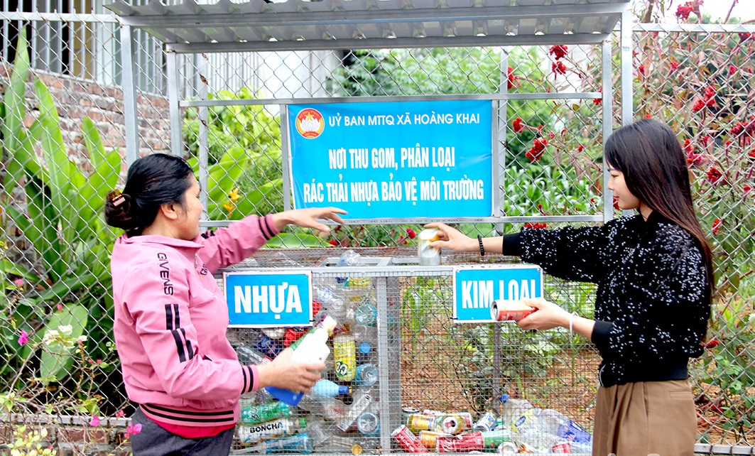 Phụ nữ thôn Yên Khánh phân loại rác thải, bảo vệ môi trường.