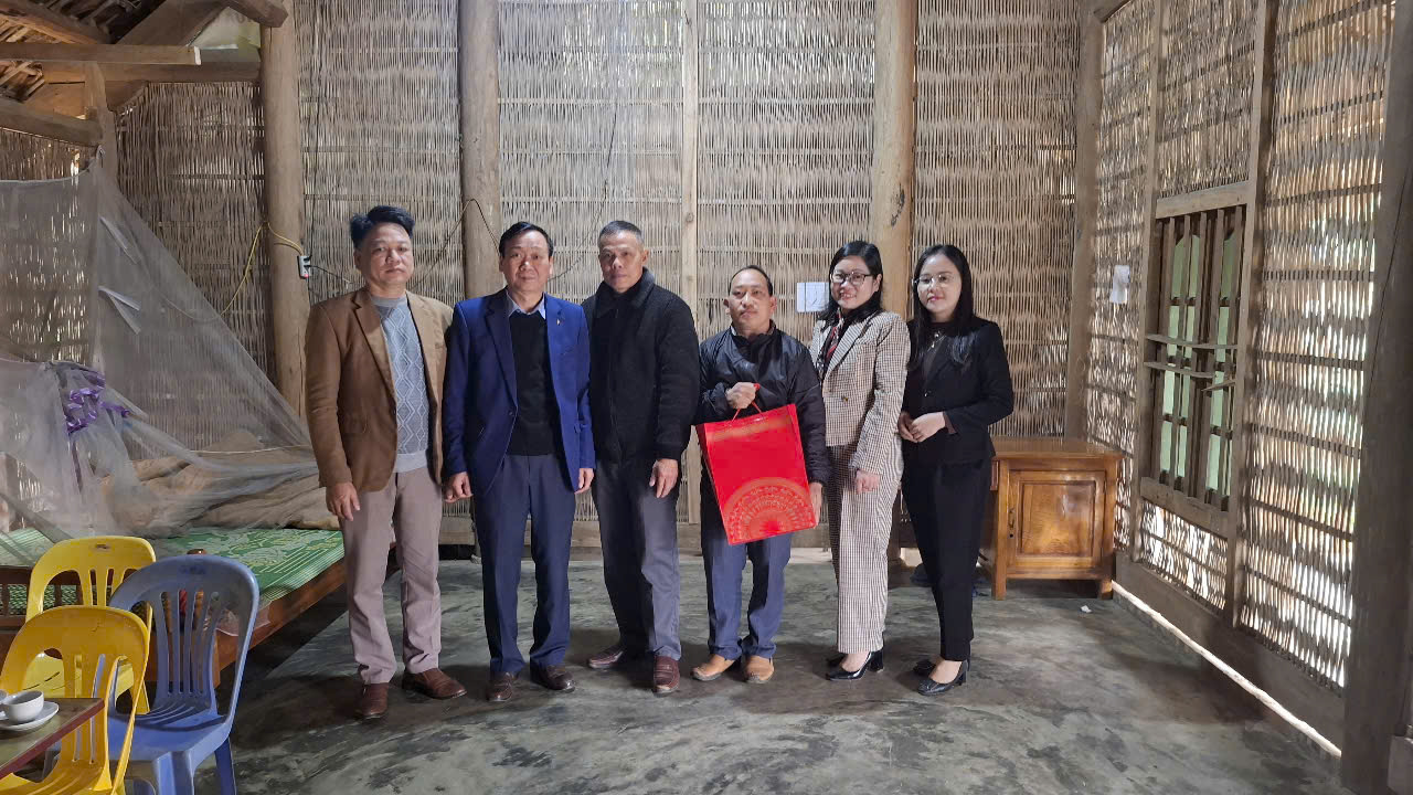 Đồng chí Lê Văn Quốc, Phó trưởng ban Thường trực, Ban Dân vận Tỉnh uỷ thăm, tặng quà Điểm nhóm Tin lành Nà Thoi, xã Xuân Quang, huyện Chiêm Hoá.