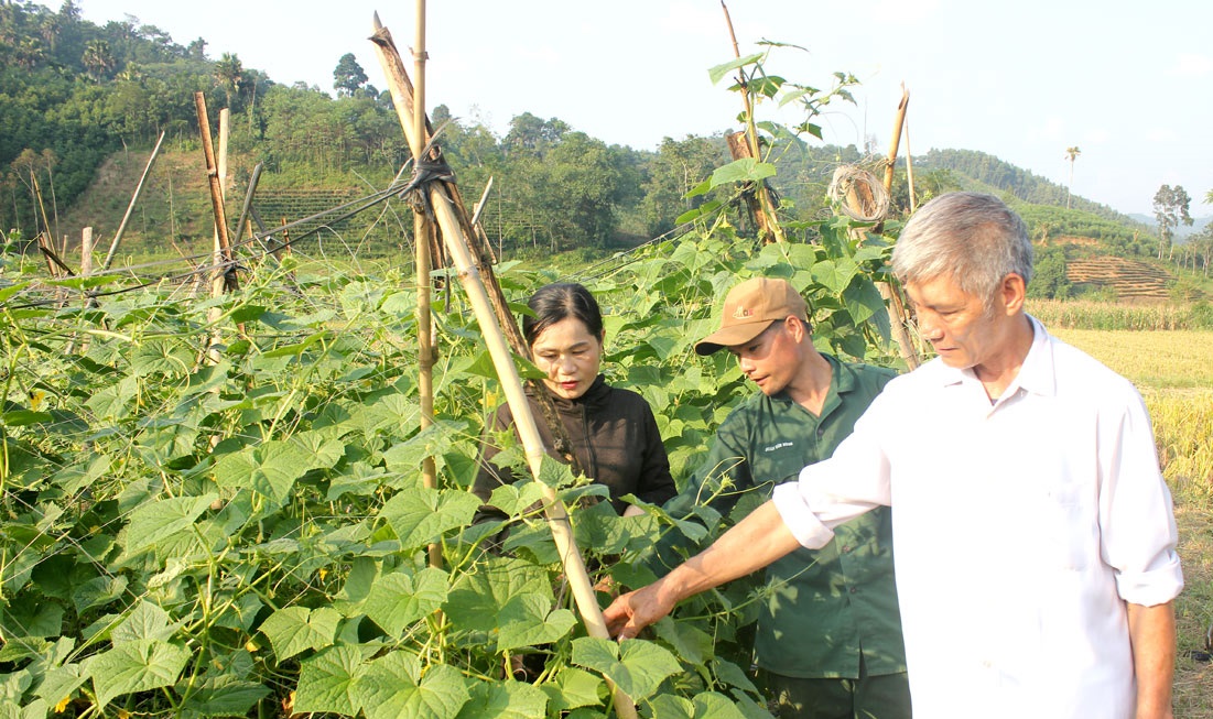 Đến thôn Đức Uy, chúng tôi nghe bà con nhắc nhiều đến ông Nguyễn Quang Minh là người có uy tín, là tấm gương sáng trong phát triển kinh tế, giảm nghèo ở địa phương. Chúng tôi tìm gặp ông Minh, khi ông đang hướng dẫn bà con trong thôn kỹ thuật trồng và chăm sóc cây dưa chuột.