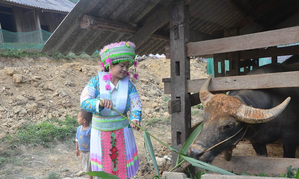 Đồng bào dân tộc Mông thôn Khuôn Làn chăn nuôi trâu nhốt vỗ béo.