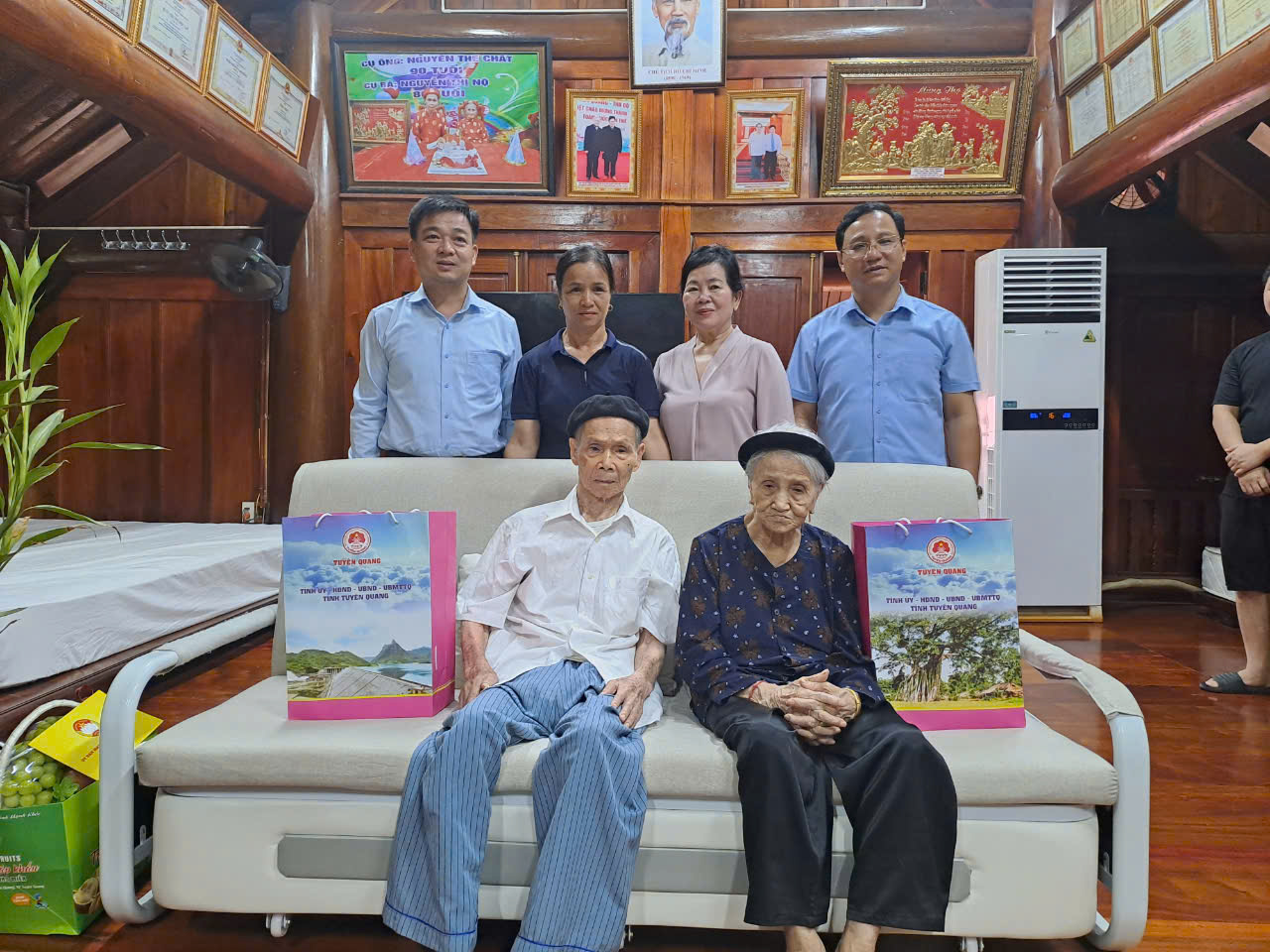 Đồng chí Nguyễn Hưng Vượng, Ủy viên Ban Thường vụ Tỉnh ủy, Trưởng Ban Dân vận Tỉnh ủy, Chủ tịch Ủy ban MTTQ tỉnh cùng lãnh đạo huyện Lâm Bình thăm, tặng quà cụ Nguyễn Thế Chất và cụ Nguyễn Thị Nộ