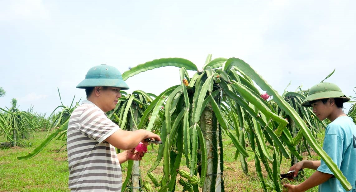 Năm 2020, anh Chí thành lập Hợp tác xã, đứng ra hướng dẫn, bao tiêu sản phẩm thanh long đỏ cho 8 hộ gia đình. Hợp tác xã hỗ trợ ban đầu về giống, phân bón cho các hộ. Năm 2022, anh Chí mở rộng diện tích trồng thanh long lên 8.000 trụ. Anh đầu tư 600 triệu đồng để xây dựng hệ thống tưới tiết kiệm nước trên diện tích 6 ha thanh long, đồng thời trồng thử nghiệm thanh long bằng giàn. Theo anh Chí, trồng thanh long bằng giàn, năng suất và chất lượng cao hơn gấp 2 lần so với trồng thông thường, nhưng chi phí đầu tư lớn nên hiện tại, anh mới trồng thử nghiệm trên diện tích 3 ha.