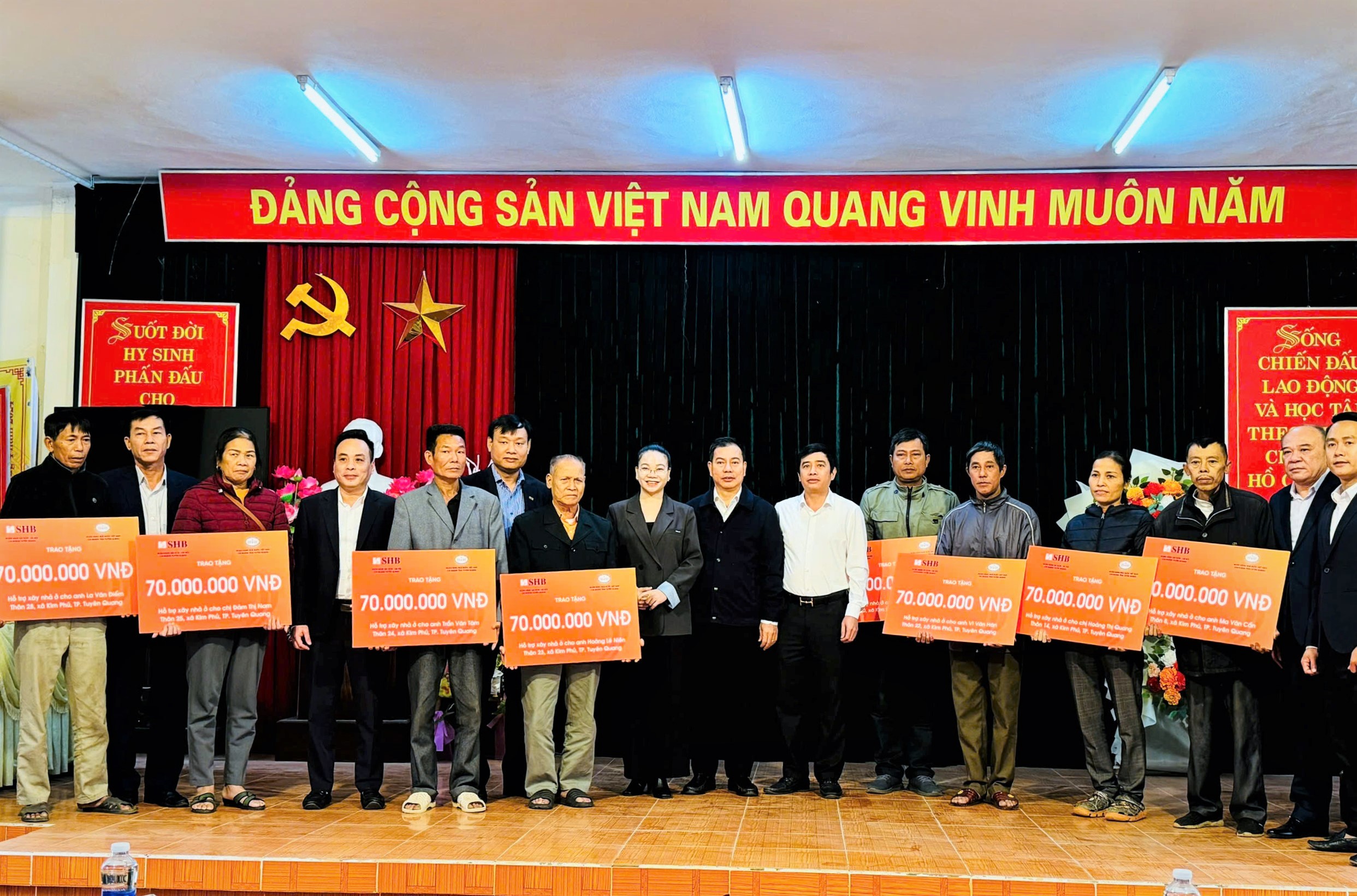 Sáng 28/11, tại Nhà văn hóa xã Kim Phú, Ngân hàng Nhà nước, chi nhánh tỉnh Tuyên Quang phối hợp với Ngân hàng Thương mại cổ phần Sài Gòn – Hà Nội (SHB) đã trao kinh phí hỗ trợ làm nhà cho hộ nghèo của xã. Đến dự có đồng chí Phạm Ngọc Hải, Ủy viên Ban Thường vụ Thành ủy, Trưởng Ban Dân vận Thành ủy, Chủ tịch Ủy ban MTTQ thành phố.