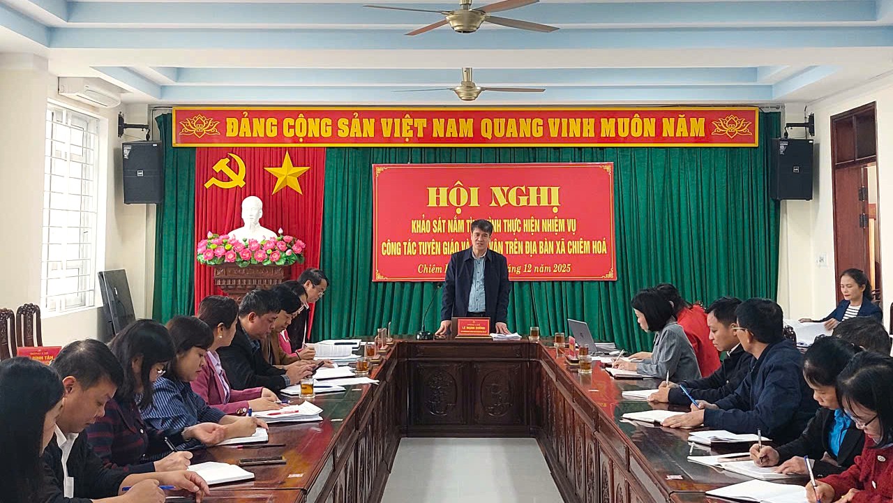 TGDV - Trong hai ngày 3 và 4-12-2025, Đoàn công tác của Ban Tuyên giáo và Dân vận Tỉnh ủy do đồng chí Lê Mạnh Cường, Phó Trưởng Ban Tuyên giáo và Dân vận Tỉnh ủy, làm Trưởng đoàn đã tiến hành khảo sát, làm việc tại Đảng bộ các xã Kiên Đài, Yên Lập và Chiêm Hóa về tình hình thực hiện nhiệm vụ tuyên giáo và dân vận ở cơ sở.