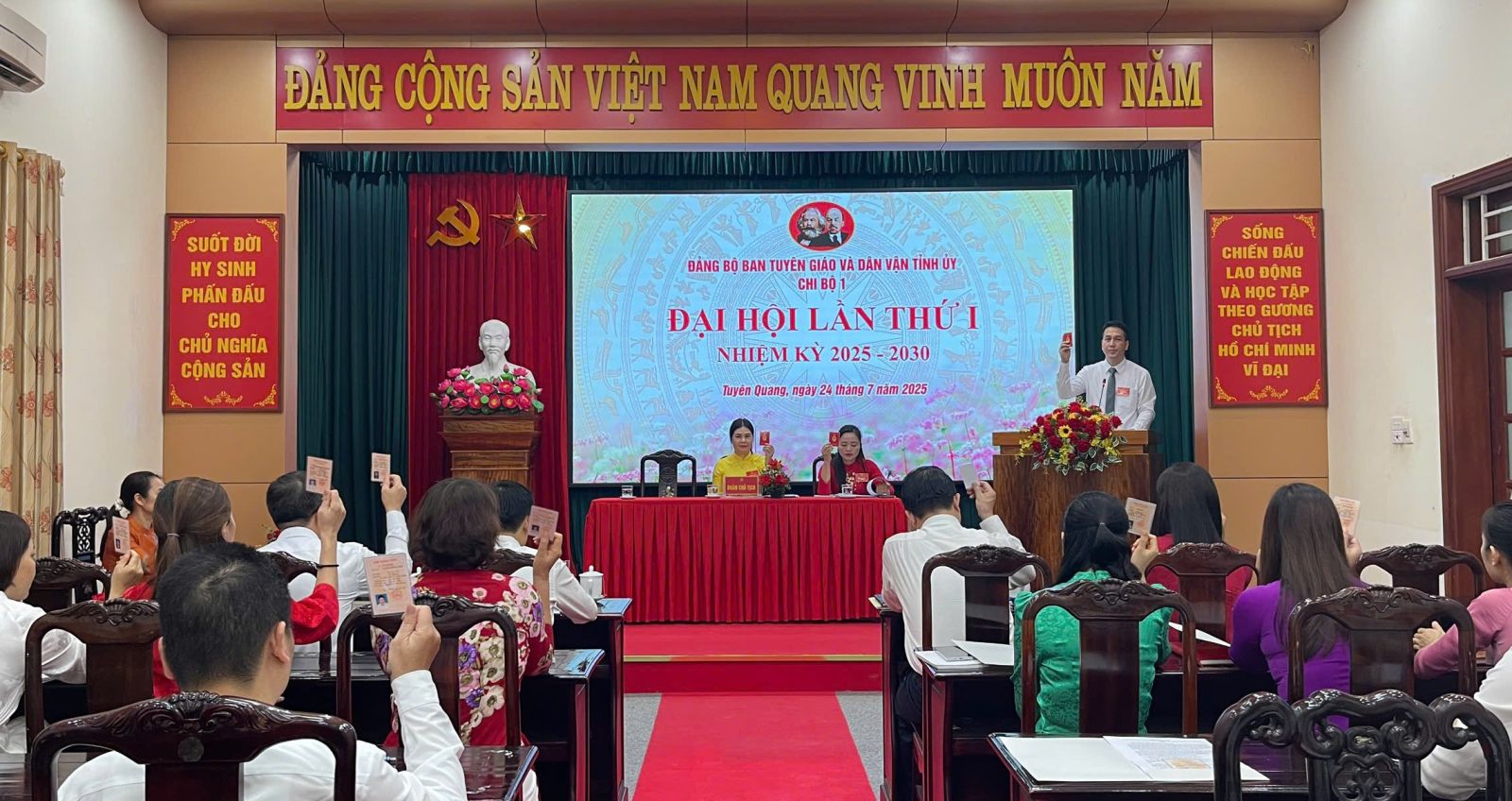 Sáng 24/7/2025, tại Hội trường Ban Tuyên giáo và Dân vận Tỉnh ủy Tuyên Quang, Chi bộ 1, Đảng bộ Ban Tuyên giáo và Dân vận Tỉnh ủy Tuyên Quang long trọng tổ chức Đại hội lần thứ I, nhiệm kỳ 2025–2030. Dự và chỉ đạo Đại hội có đồng chí Trần Mạnh Lợi, Ủy viên Ban Thường vụ Tỉnh ủy, Bí thư Đảng ủy, Trưởng Ban Tuyên giáo và Dân vận Tỉnh ủy Tuyên Quang. Cùng dự có các đồng chí trong Ban Thường vụ Đảng ủy Ban Tuyên giáo và Dân vận Tỉnh ủy, đại diện chi ủy các chi bộ trực thuộc Đảng bộ và toàn thể đảng viên Chi bộ 1.