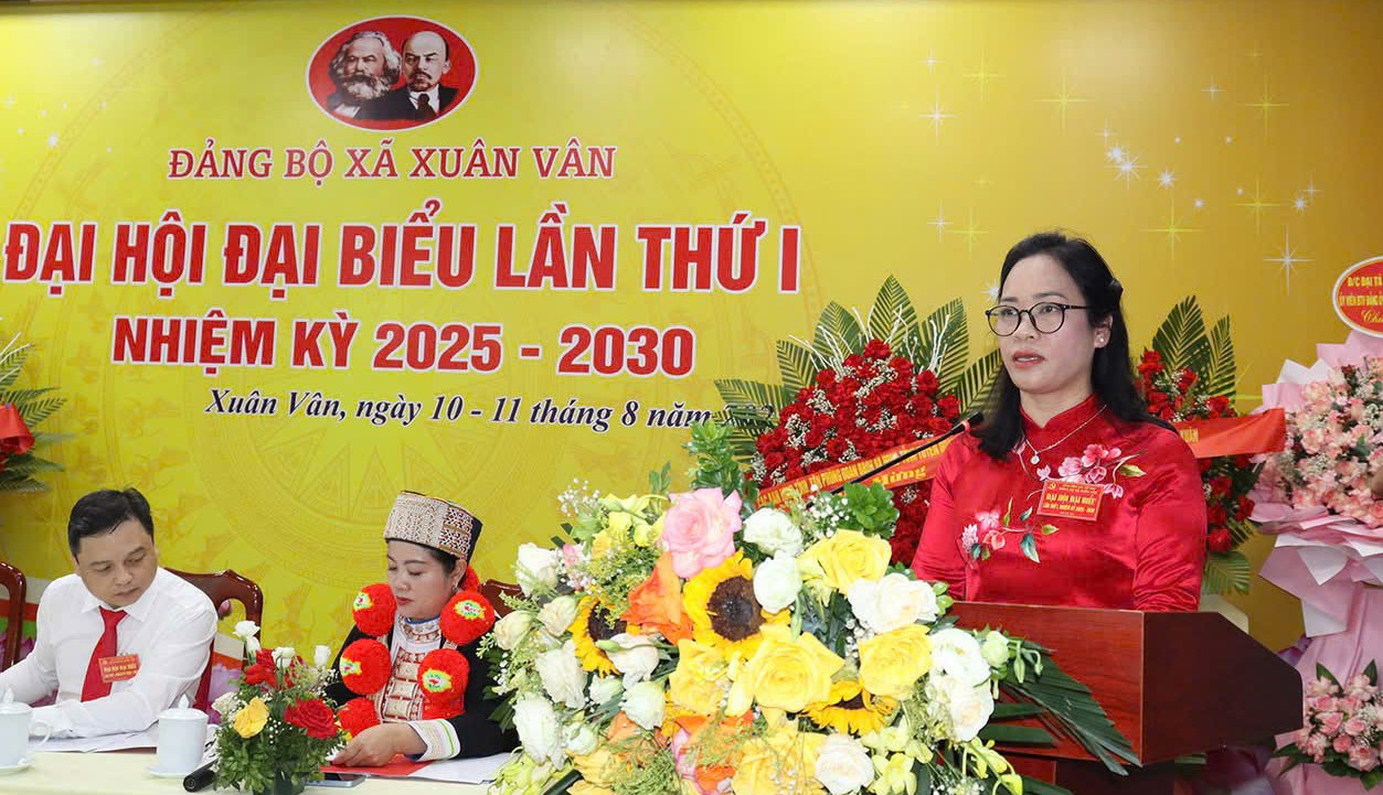 TGDV - Sáng ngày 11-8, Đảng bộ xã Xuân Vân tổ chức Đại hội đại biểu Đảng bộ lần thứ I, nhiệm kỳ 2025-2030. Đồng chí Lê Thị Thanh Trà, Ủy viên Ban Chấp hành Đảng bộ tỉnh, Phó Chủ tịch Hội đồng nhân dân tỉnh dự và chỉ đạo Đại hội. Dự Đại hội có lãnh đạo Vụ địa phương 1, Ban Tổ chức Trung ương; lãnh đạo một số sở, ban, ngành của tỉnh.