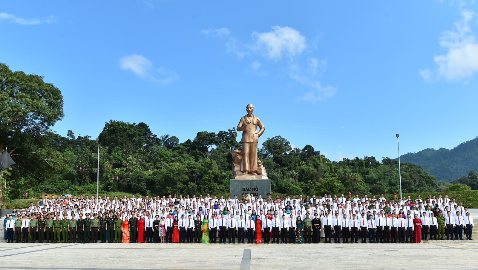 Đoàn đại biểu dự Đại hội Đảng bộ tỉnh lần thứ I, nhiệm kỳ 2025 - 2030 trước Tượng đài Bác Hồ ở Tân Trào