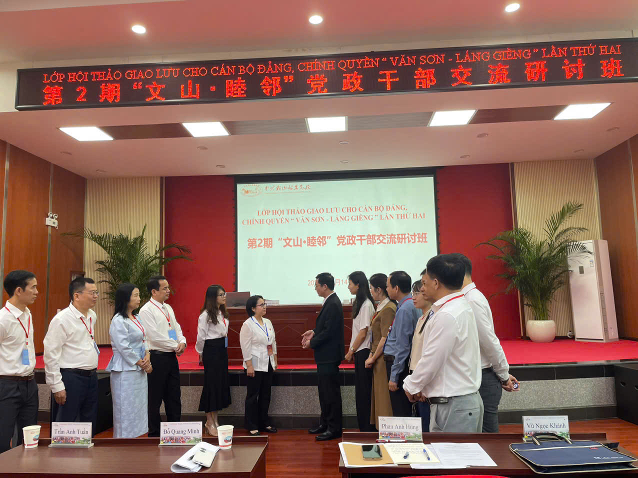 TGDV - Nhận lời mời của Ban Tổ chức Châu ủy Văn Sơn, tỉnh Vân Nam, Trung Quốc, nhân kỷ niệm 75 năm thiết lập quan hệ ngoại giao Việt Nam - Trung Quốc, từ ngày 13/10/2025 đến ngày 16/10/2025, Đoàn công tác tỉnh Tuyên Quang do đồng chí Phan Anh Hùng, Phó trưởng Ban Tổ chức Tỉnh ủy làm Trưởng Đoàn đã tham gia Lớp Hội thảo giao lưu cho cán bộ Đảng, Chính quyền “Văn Sơn-Láng Giềng” lần thứ hai, tổ chức tại Châu Văn Sơn. Cùng tham gia Đoàn công tác có đại diện lãnh đạo, cán bộ Ban Tuyên giáo và Dân vận Tỉnh ủy, Ủy ban Kiểm tra Tỉnh ủy, Ban Tổ chức Tỉnh ủy, Ban Nội chính Tỉnh ủy, Văn phòng Tỉnh ủy, Sở Nội vụ, Sở Ngoại vụ, Công an tỉnh.