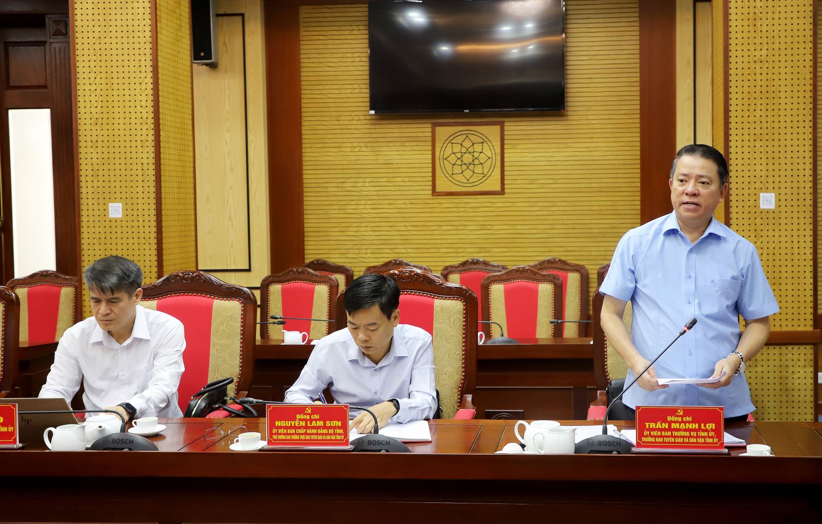 Trưởng ban Tuyên giáo và Dân vận Tỉnh ủy Trần Mạnh Lợi báo cáo công tác tuyên giáo và dân vận tại buổi làm việc.