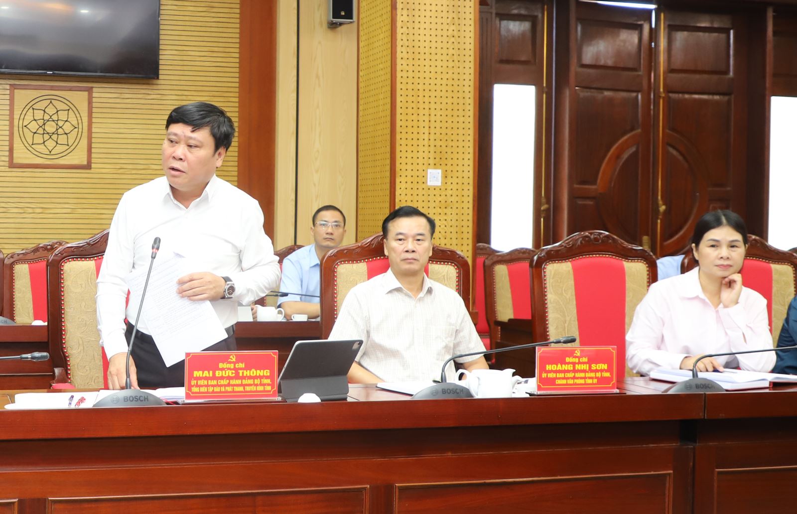 Tổng Biên tập Báo và phát thanh, truyền hình Tuyên Quang Mai Đức Thông thảo luận tại buổi làm việc.