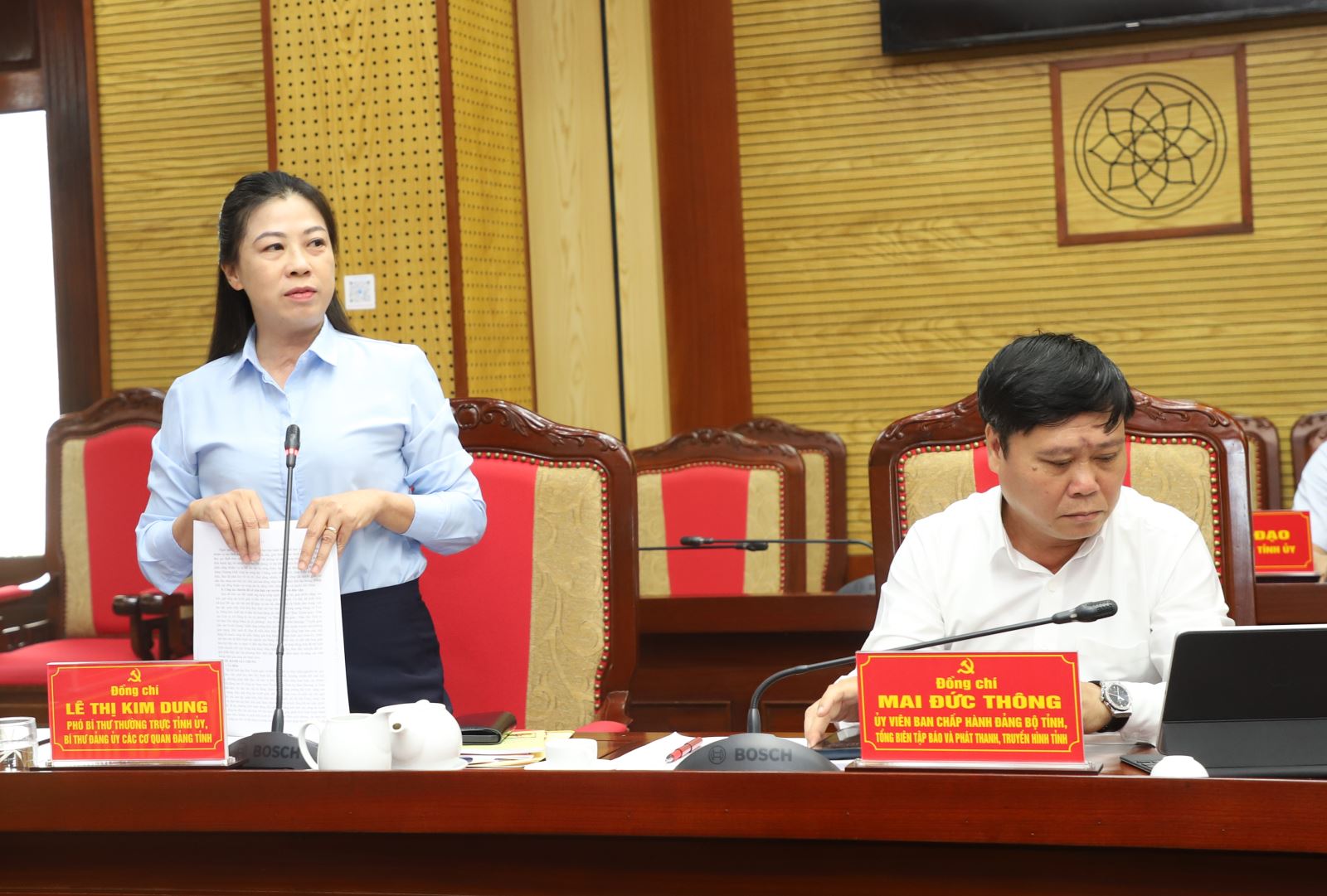 Phó Bí thư Thường trực Tỉnh ủy Lê Thị Kim Dung phát biểu thảo luận tại buổi làm việc.