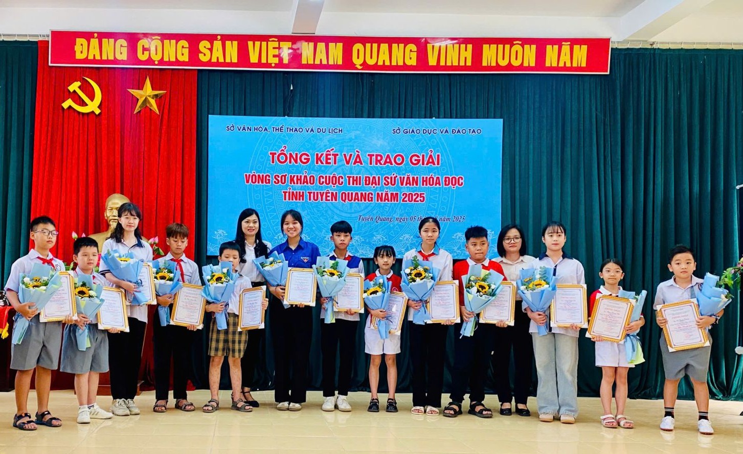 TGDV- Sáng 5-8 , Sở Văn hóa, Thể thao và Du lịch tổ chức tổng kết và trao giải vòng sơ khảo cuộc thi Đại sứ văn hóa đọc tỉnh Tuyên Quang năm 2025. Dự buổi tổng kết và trao giải có lãnh đạo Ban Tuyên giáo và Dân vận Tỉnh uỷ; đại diện lãnh đạo các phòng, ban của Sở Văn hoá, Thể thao và Du lịch; Sở Giáo dục và Đào tạo, cùng đông đảo giáo viên, học sinh trên địa bàn tỉnh.