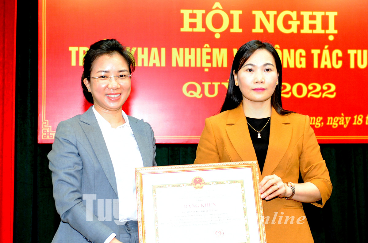 Tại Hội nghị đã công bố và trao Bằng khen của Chủ tịch UBND tỉnh cho đồng chí Phạm Thị Bích Hường, Bí thư Thành đoàn Tuyên Quang đã có thành tích đạt giải Nhì trong Hội thi Chung khảo toàn quốc Báo cáo viên, tuyên truyền viên giỏi tuyên truyền Nghị quyết Đại hội XIII của Đảng và Nghị quyết Đại hội đảng bộ các cấp, nhiệm kỳ 2020 - 2025.