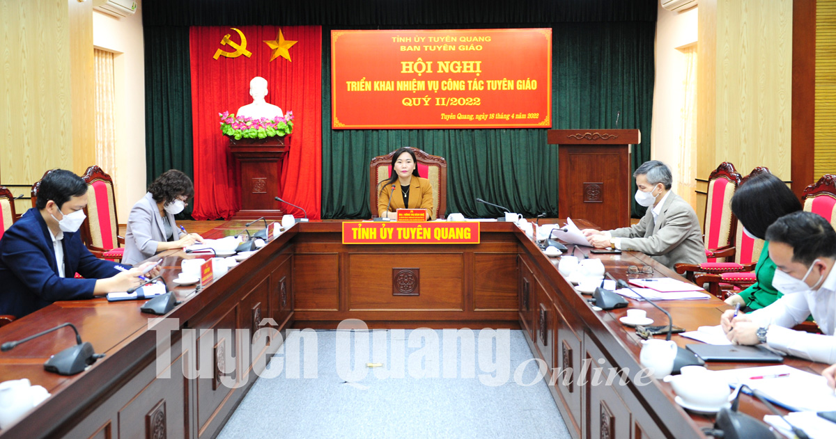 Phát biểu kết luận tại hội nghị, đồng chí Nông Thị Bích Huệ, Ủy viên Ban Thường vụ Tỉnh ủy, Trưởng Ban Tuyên giáo Tỉnh uỷ nhấn mạnh, trong quý II, toàn ngành tuyên giáo đề ra 12 nhiệm vụ công tác, trên cơ sở đó các đơn vị, địa phương cần lựa chọn nhiệm vụ trọng tâm, trọng điểm, tránh dàn trải chung chung để triển khai thực hiện cho thực sự có hiệu quả, kết quả nổi bật rõ nét. Trong đó nhiệm vụ hàng đầu là tiếp tục đẩy mạnh việc nghiên cứu, quán triệt, tuyên truyền và triển khai thực hiện Nghị quyết Đại hội XIII của Đảng, các nghị quyết, chỉ thị, kết luận, quy định của Đảng, Nghị quyết Đại hội đại biểu Đảng bộ tỉnh lần thứ XVII và nghị quyết đại hội Đảng bộ các cấp nhiệm kỳ 2020 - 2025, chương trình hành động của các ngành, các cấp.