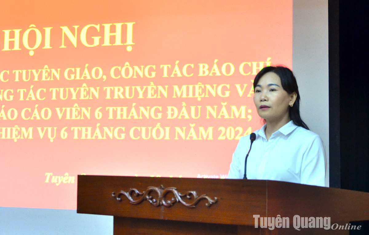 Phát biểu tại Hội nghị, đồng chí Trưởng Ban Tuyên giáo Nông Thị Bích Huệ đề nghị, 6 tháng cuối năm 2024, ngành Tuyên giáo cần tập trung thực hiện tốt các nội dung Ban Tuyên giáo Tỉnh ủy đã định hướng tuyên truyền.