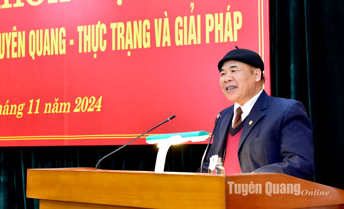 Phó Tổng Biên tập Báo Tuyên Quang trình bày tham luận tại hội thảo.