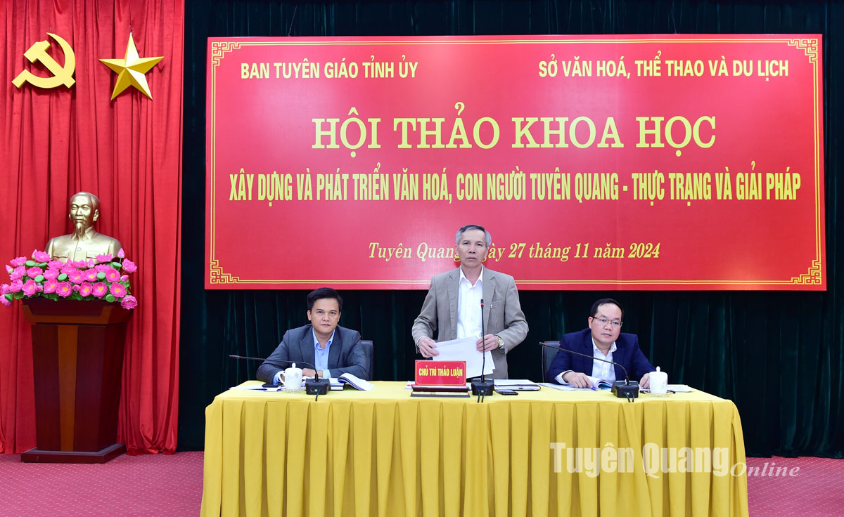 Chiều 27-11, tại Trung tâm Thông tin - Hội nghị tỉnh, Ban Tuyên giáo Tỉnh ủy phối hợp với Sở Văn hóa - Thể thao và Du lịch tổ chức Hội thảo khoa học “Xây dựng và phát triển văn hóa, con người Tuyên Quang - Thực trạng và giải pháp”.
