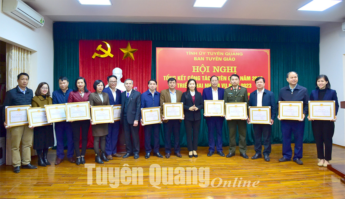 Các đồng chí lãnh đạo Ban Tuyên giáo Tỉnh ủy trao Giấy khen cho các tập thể có thành tích xuất sắc trong năm 2022
