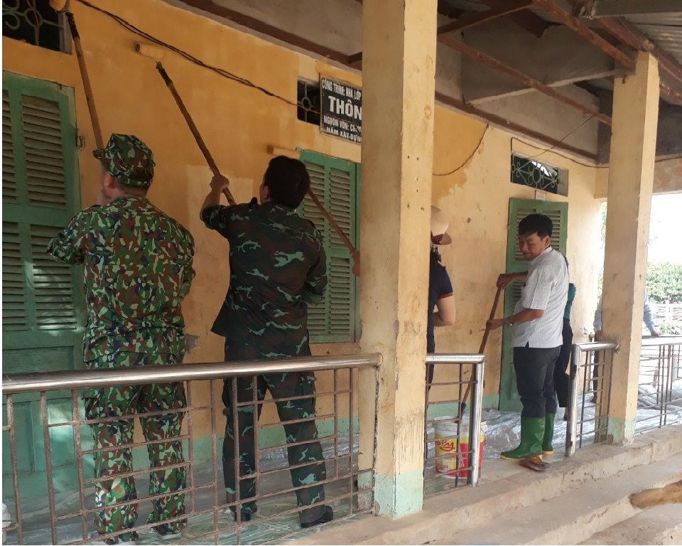Đã có trên 40 lượt cán bộ, đảng viên, chiến sĩ lực lượng vũ trang và Nhân dân thôn Lè, xã Hùng Lợi giúp tháo dỡ trần, quét vôi ve, chỉnh trang khuôn viên lớp học mầm non thôn Lè, xã Hùng Lợi.