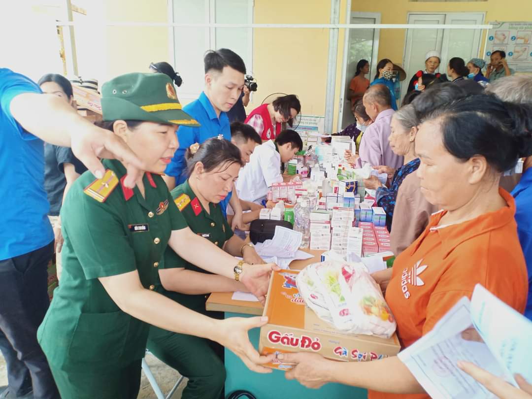Cán bộ, chiến sỹ tổ chức khám, tư vấn sức khỏe, phát thuốc miễn phí cho Nhân dân tại xã Đà Vị, huyện Na Hang