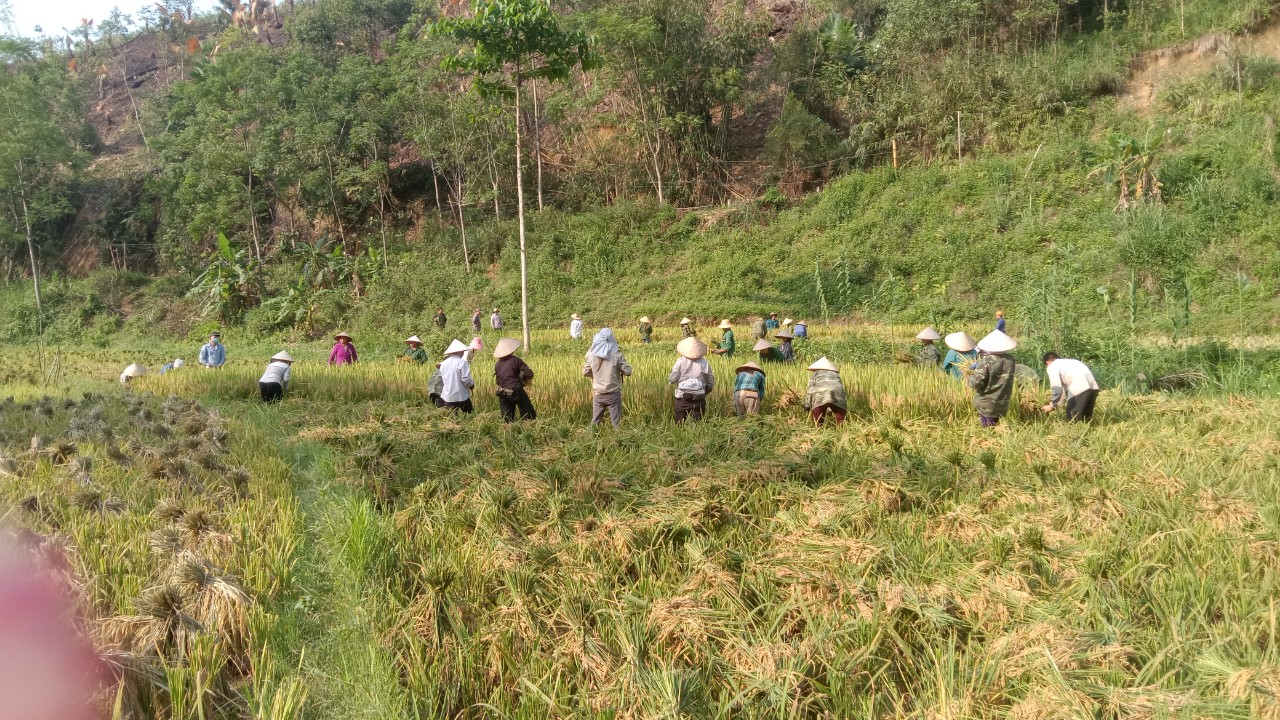 Tham gia giúp hộ gia đình ông Nguyễn Văn Núi có hoàn cảnh khó khăn thu hoạch lúa.