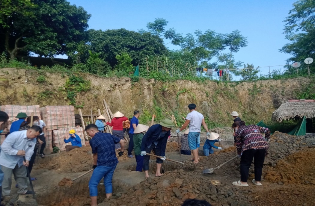 Cán bộ, công chức xã cùng Nhân dân thôn Yên Vinh, xã Yên Lập, huyện Chiêm Hóa giúp hộ gia đình ông Ma Văn Luân, đào móng làm nhà ở mới.