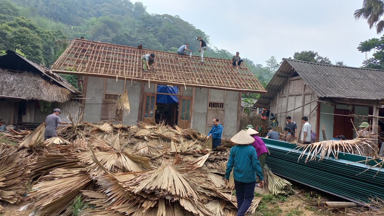 Giúp đỡ gia đình ông Hoàng Văn Nhậm, thôn Khuân Phục, xã Ngọc Hội tu sửa, lợp lại mái nhà