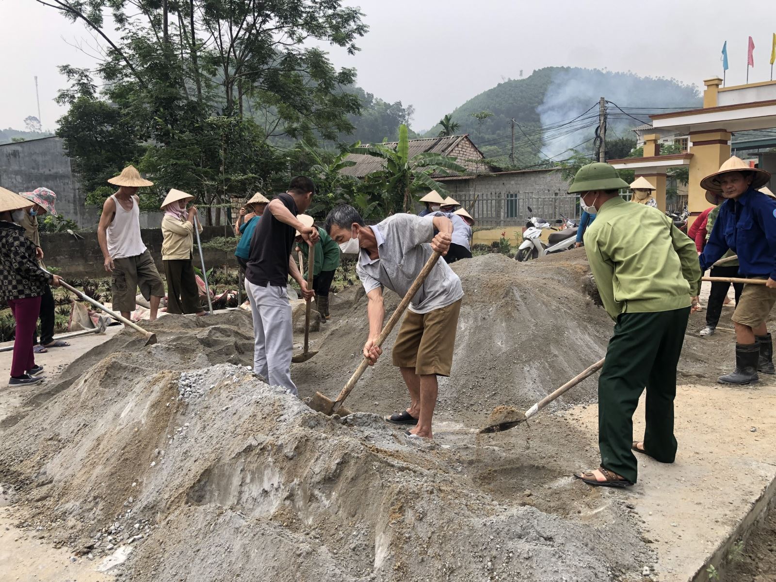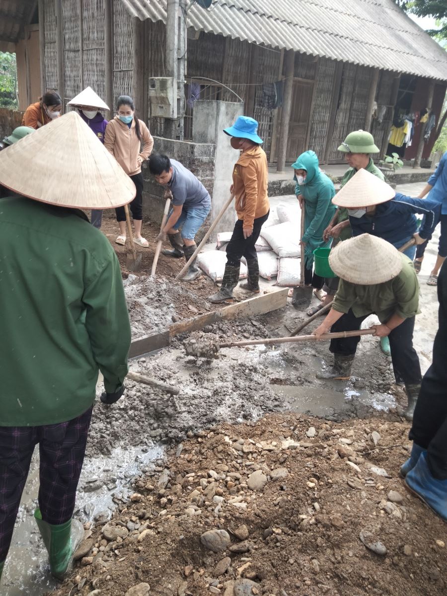 Tham gia cùng với nhân dân thôn 5, xã Nhữ Khê đổ sân bê tông nhà văn hóa thôn