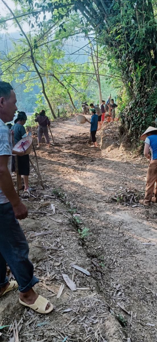 Tham gia vệ sinh đường làng, ngõ xóm tại thôn Bản Thác, xã Yên Hoa