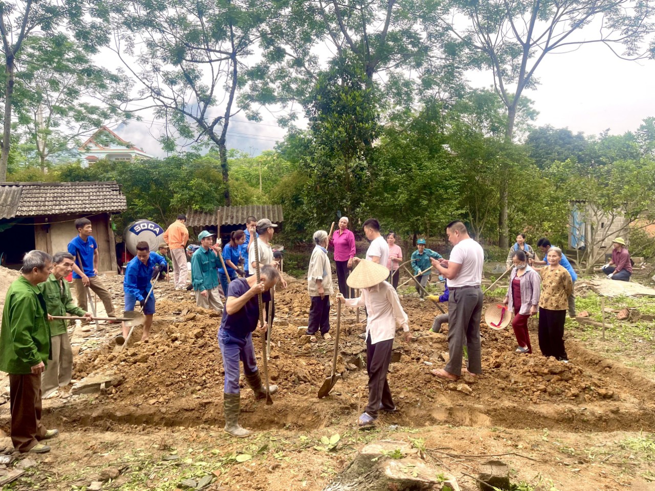 Cán bộ, đảng viên, đoàn viên xã Chiêu Yên, huyện Yên Sơn tham gia cùng Nhân dân thôn Tân Tiến, tháo dỡ, đào móng nhà để làm nhà mới cho hộ nghèo.